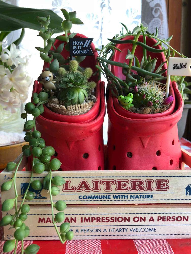 多肉のサンダル可愛い(๑>ᴗ<๑)です。発想が凄いですね👍💕