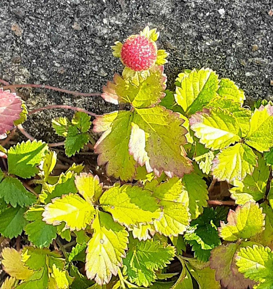 道端のへび苺の赤い実😄