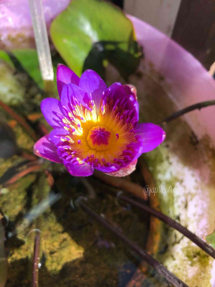 我が家の熱帯睡蓮ティナ、まだ咲いています。