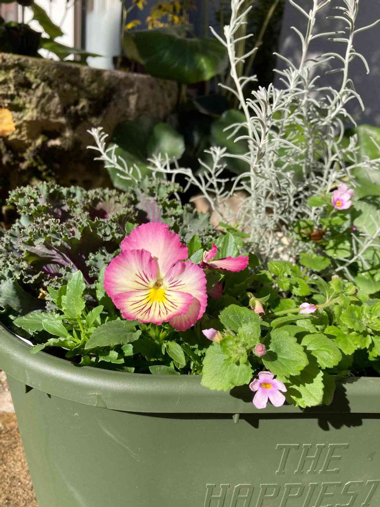かわいい色だと思い慌てて買って植えてみたら、一つははっきりした色にした方が良かったかなと思っているところです。シンメトリーに植えたので写ってない半分も似た感じです😊