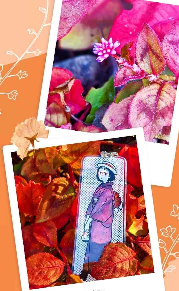 お散歩ちゃんキーホルダーのかえでちゃんも秋色を纏ってのお散歩🍁気持ち良さそうだね〜🍁ꔛ*🍂