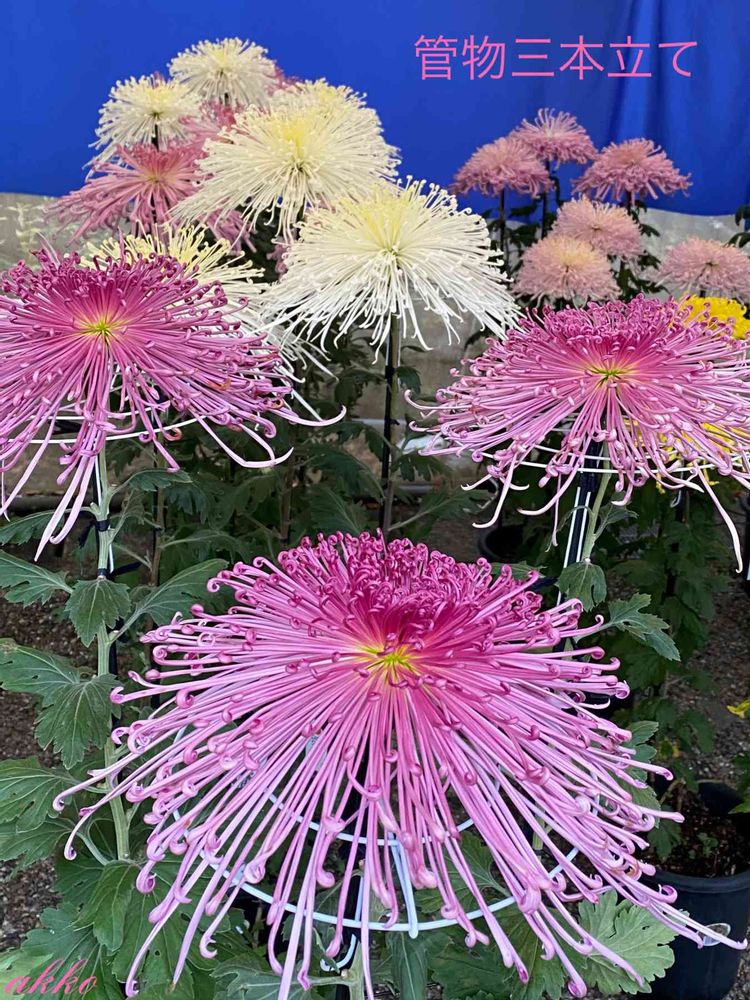 菊花展の管物三本仕立ての美しい菊の花たちも、