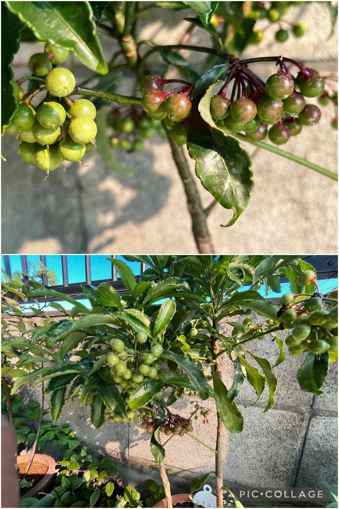 昨年頂いた、紅白セットになった鉢植。今年も無事に実が成り少しずつ色付き始め、赤と白の見分けが出来るようになりました(^-^)v