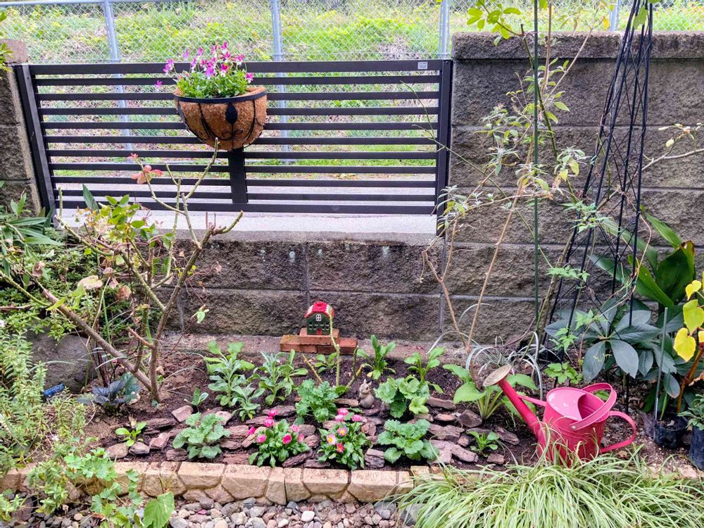 種まきした苗を今までは畑花壇に植えてましたが、みじかな庭に植えたいと工夫してみました