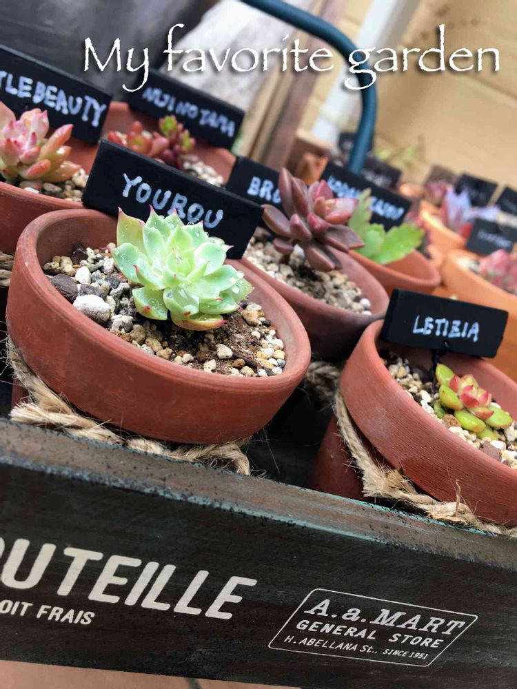 チビ多肉達も新たに加わり、ちっちゃな鉢が沢山並んでます(◍︎ ´꒳` ◍︎)名前も飾ってそれぞれの個性が光っています。皆大きくなあれ~♡