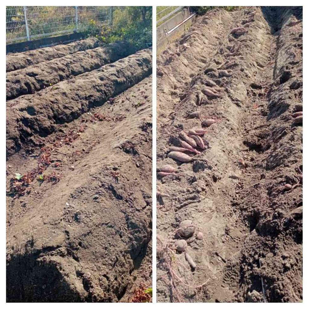 ゴム手袋して手掘り ただいま三畝掘り上げ中。😙💧💧💧