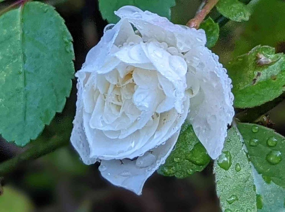 こちらのミニバラさんもコロコロコロコロ雨粒付けて…このままそっとオブジェにしたいな…。
