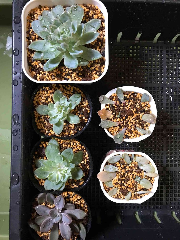 子株を取ったものと、花茎の葉挿しっ子の植付け🪴