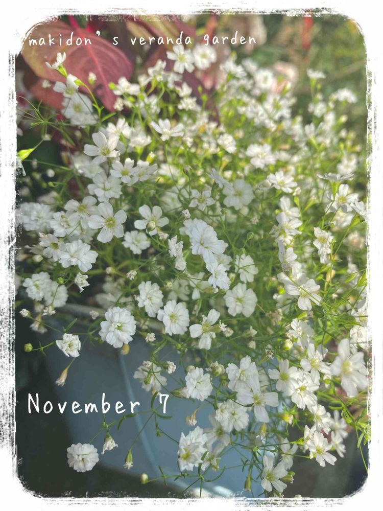 カスミソウ➰いつも脇役ばかりですが、本日は主役に抜擢‼️寄せ植えのコスモス待ちのカスミソウ➰