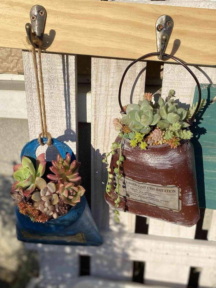こんにちは😃 初挑戦のアルミ缶をリメイクして作ったバッグ型の鉢😊 今日チマチマ寄せ植えしてみました。 ん〜 なかなか可愛いではないか❣️