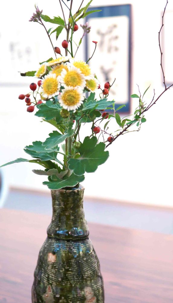 この深いグリーンの花器は、織部でしょうか…私も、どこかに行ってみようかな。