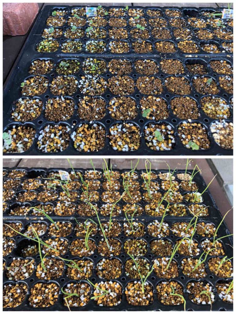 10/9に蒔いたラベンダー(上)と玉ねぎ(下)の今日の様子です🌱