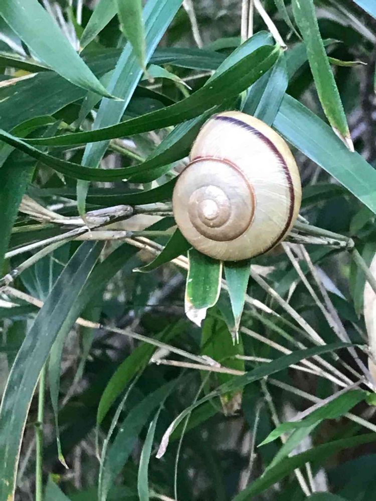 この🐌もしかして左巻きかしらね。観察会で虫に詳しい人からミスジマイマイと教わったけど。ヒダリマキマイマイなのかな。(๑º_º๑)?