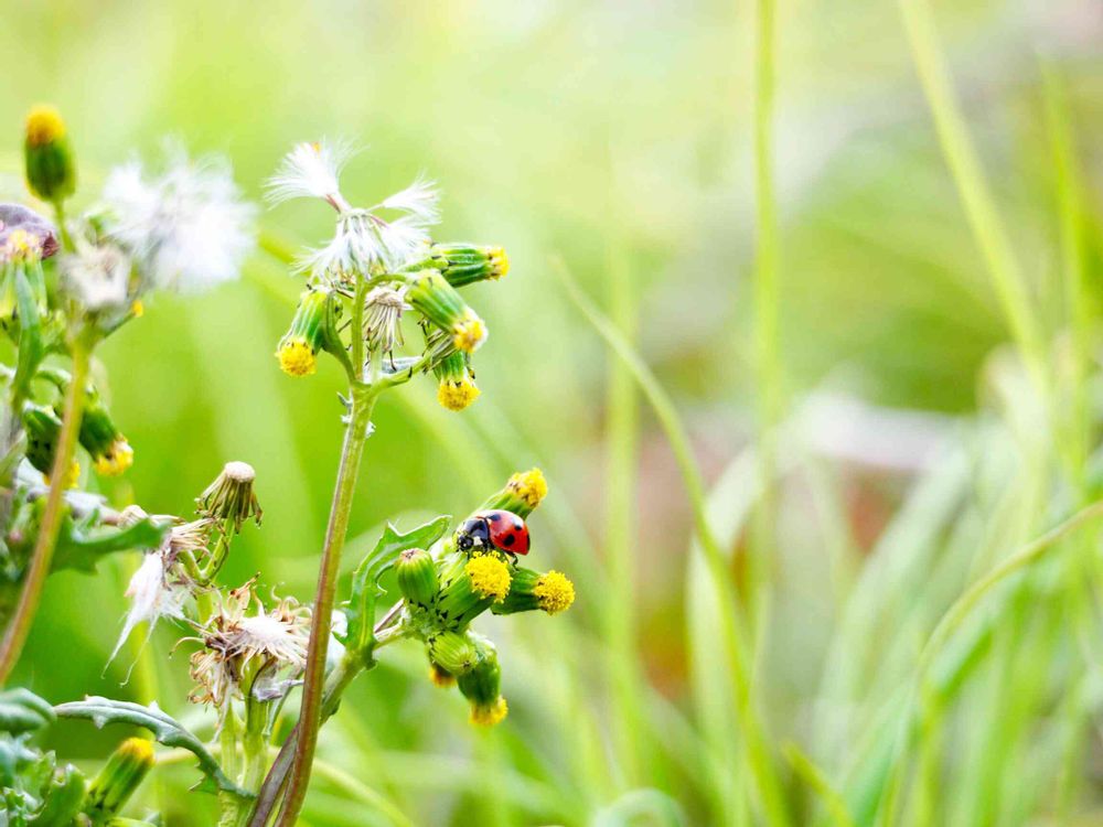 春の黄緑の世界に、赤いぽっちり🐞可愛い〜😍