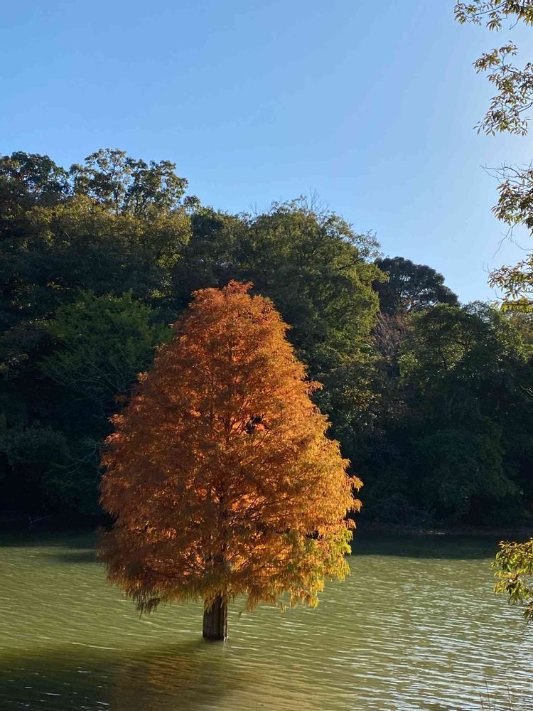 あら不思議?増水したのかしら?紅葉がきれいな木ですね✨