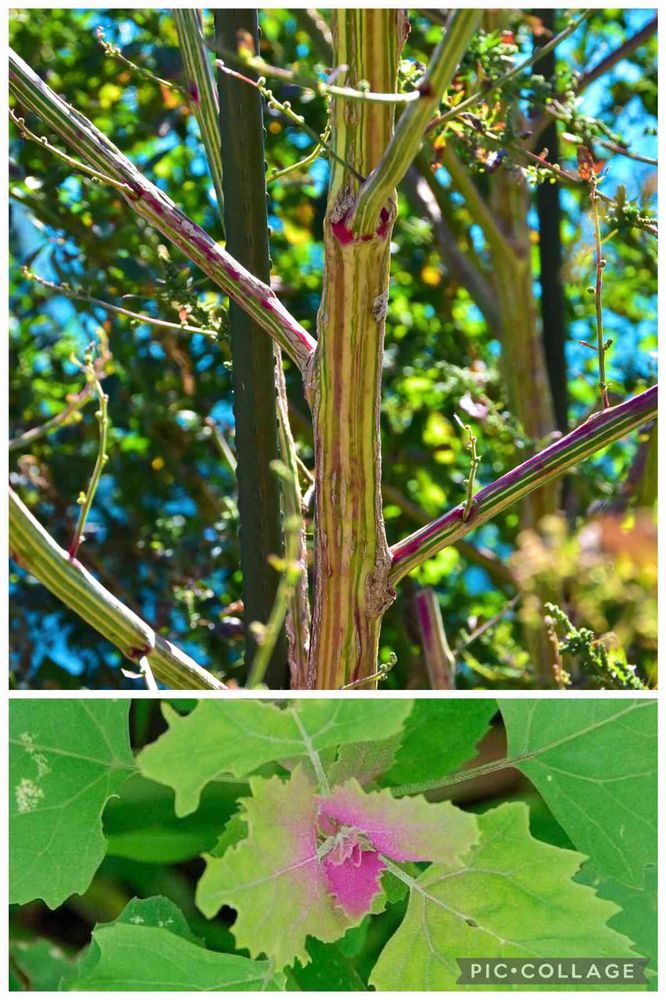 ⬇️の草、多分見かけられたことが多いと思うけど、雑草扱いのヒユ科の「アカザ」です。この赤い部分(新芽を日光などから守る為の粒子)が白いのは「シロザ」、どっちかというとシロザの方が多いかも…