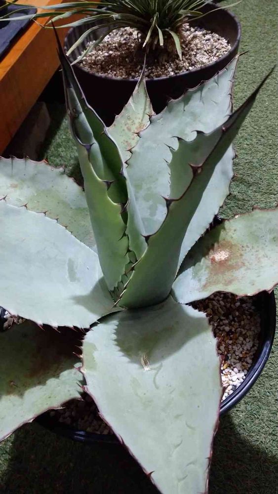 緑白っぽくて黒棘がなかなか良いですね😍大きいほうがアガベらしい気がしますね🌵😁