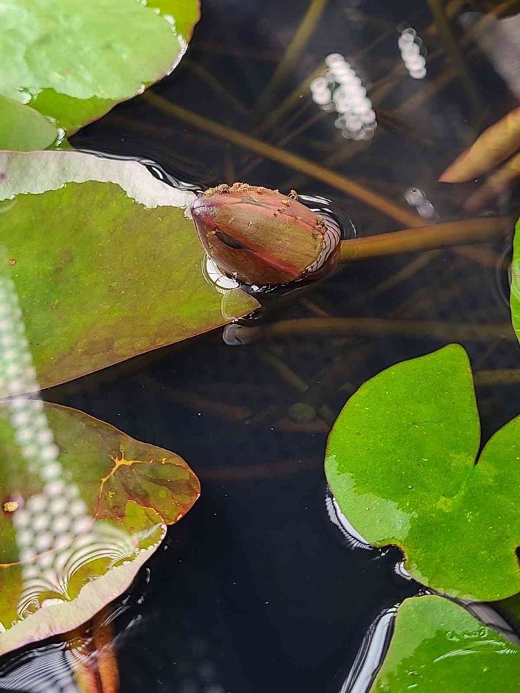 昨日は睡蓮鉢14個の水換え掃除をしようとしていたら、温帯睡蓮鉢に、未だこれから咲く蕾を発見しました。