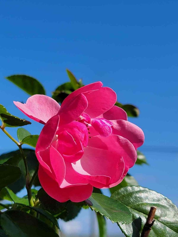 真っ青な綺麗なお空に真っ赤な🌼🌹アンジェラさん映えて凄く(*^^)v 綺麗ダネェ~♥