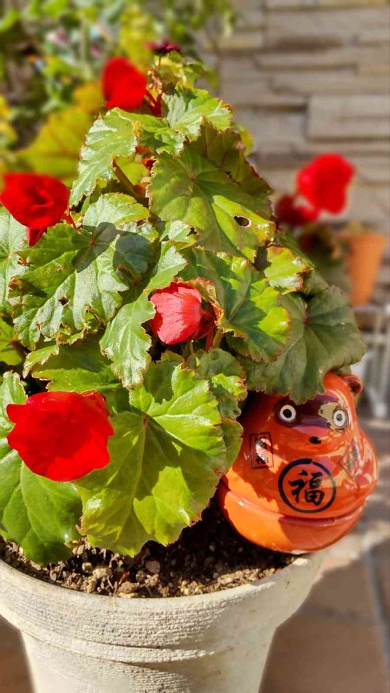 タヌキさんがベコニアにすごく馴染んでる🌼🦝💕