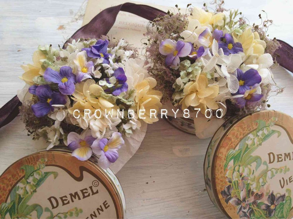 DEMELのスミレの砂糖漬けのBoxにスミレの花のアレンジをしたんですね☝️