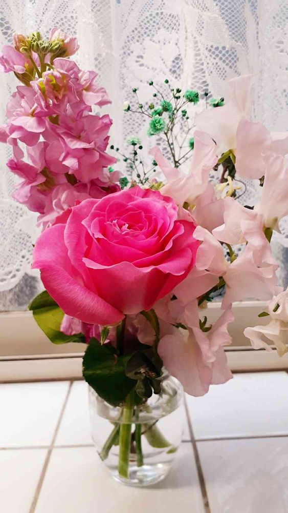 ひぃばぁばのお見舞いのために孫娘が選んだブーケ💐💕😊
