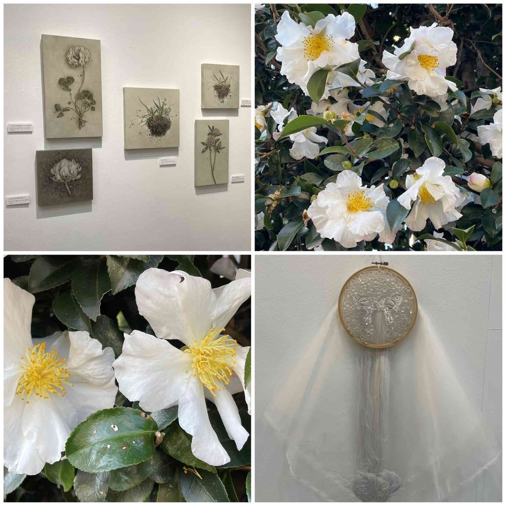 素晴らしいアート作品と綺麗な白い山茶花で眼と心の栄養満点ですネ💯🙆🎶🎶