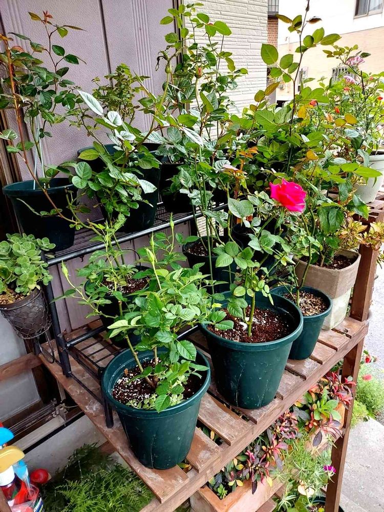 薔薇鉢植えを、ひな壇にしてみました! 5号鉢植え🔰とかの小規模ならでは