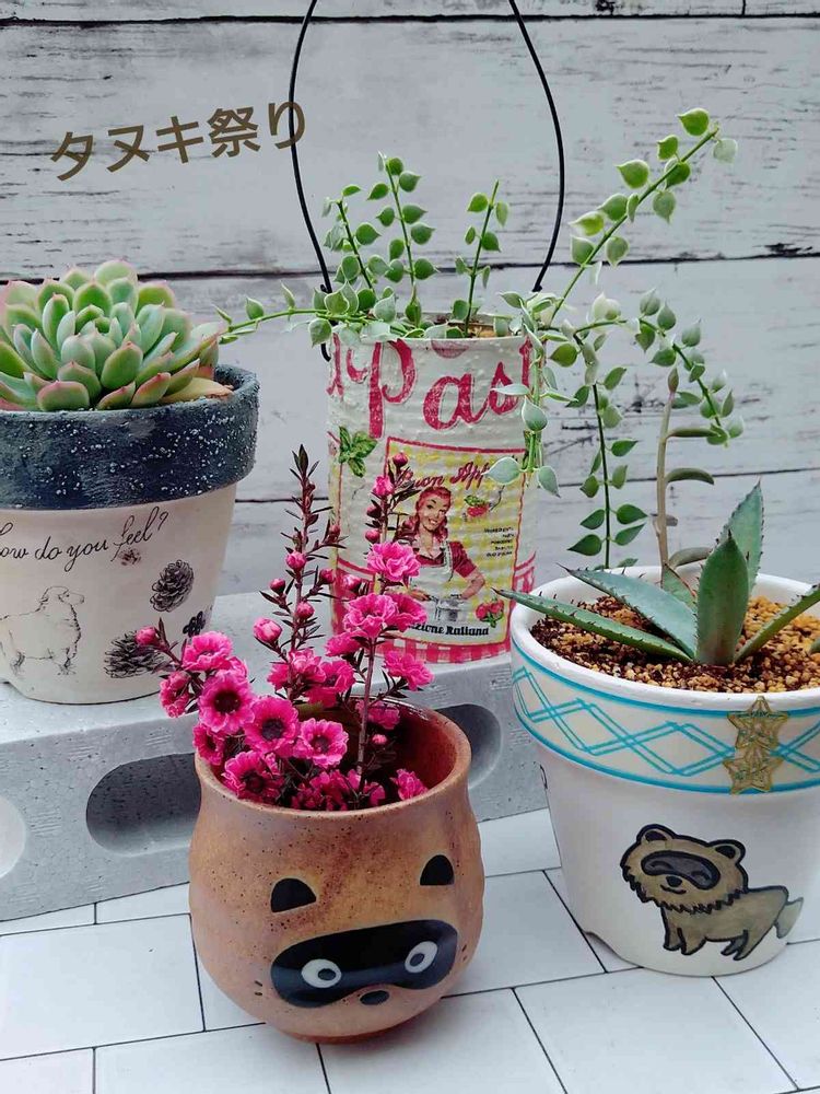 タヌキは、みぃみぃちゃんから、頂いた信楽焼のタヌキの湯のみ 😍