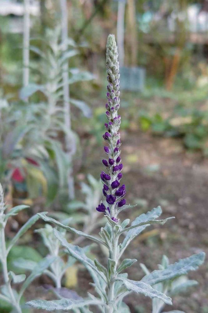 シルバーリーフに濃い💜の蕾が素敵💕