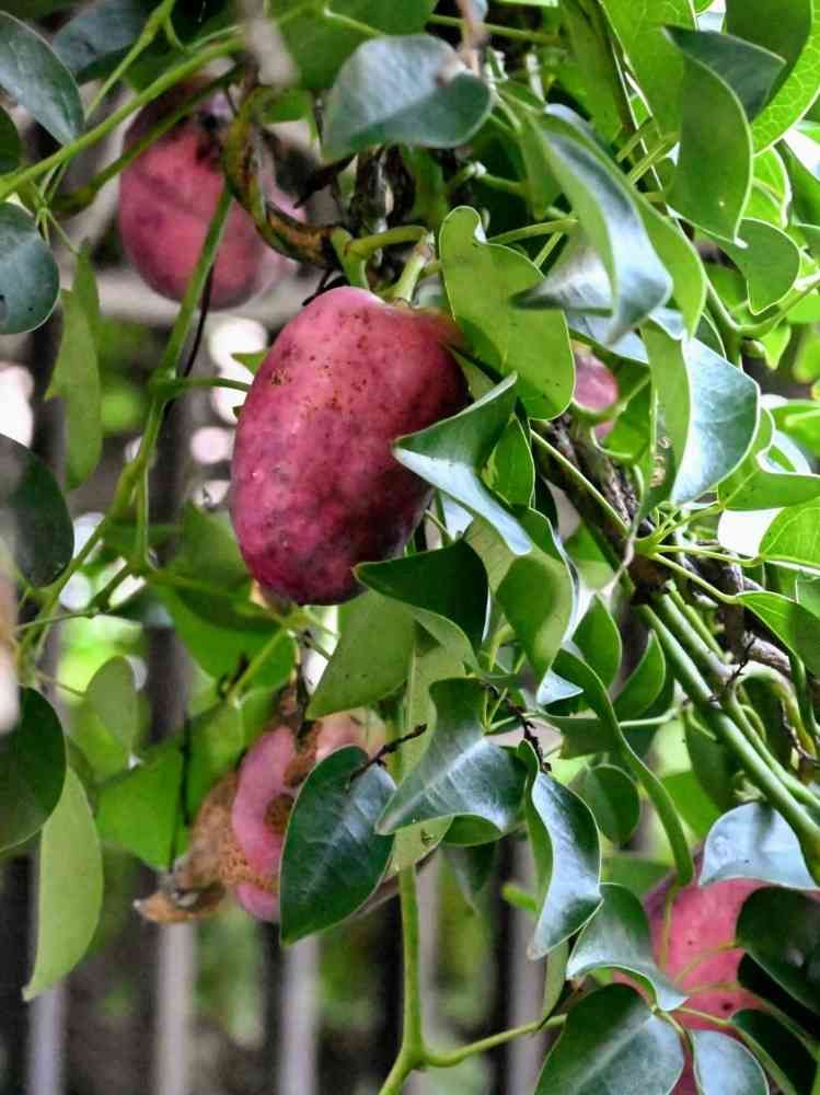 ムベとアケビも区別がつかなかったのですが、常緑なのでムベだと分かりました。