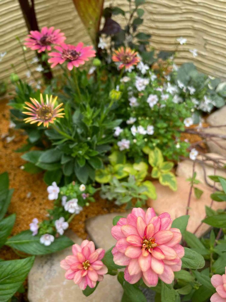 ジニアちゃんの花びらに濃いピンクの筋が入っていて可愛い(ᴗ͈ˬᴗ͈)♬♡