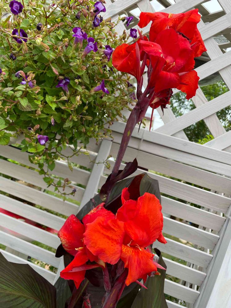 もう一枚、カンナ。今度は、銅葉でオレンジがかった赤のカンナ。存在感があります😊🎶