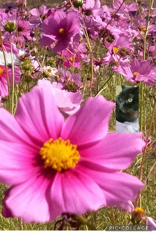 ダイズくんとコスモスのコラボ🌸🐈⬛
