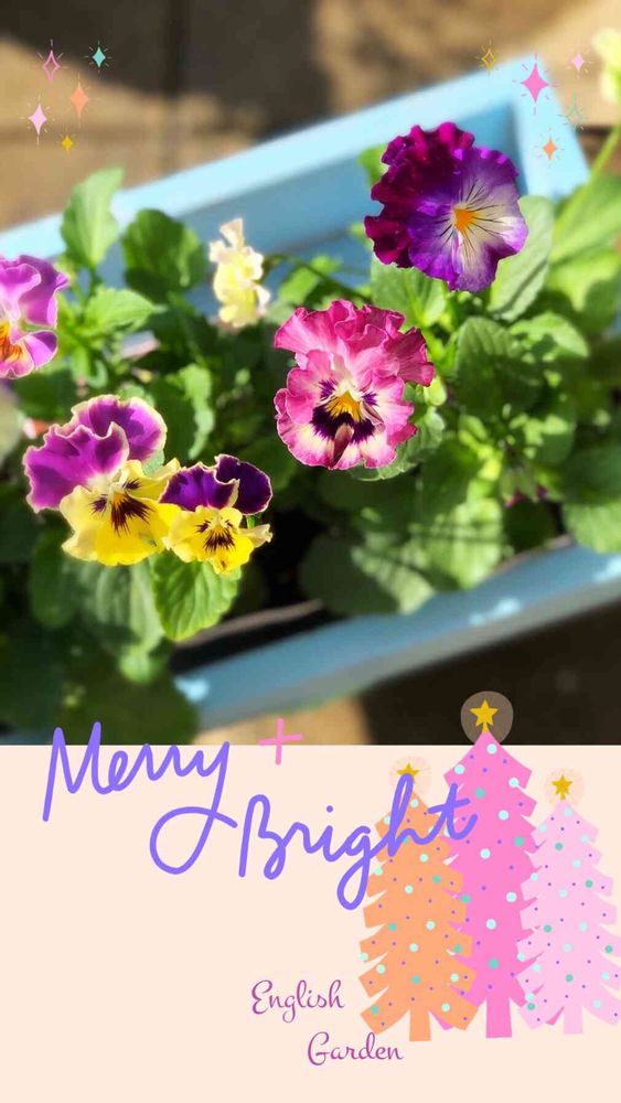 ブルーの木製ケースとビオラさんたち とっても素敵です✨✨✨