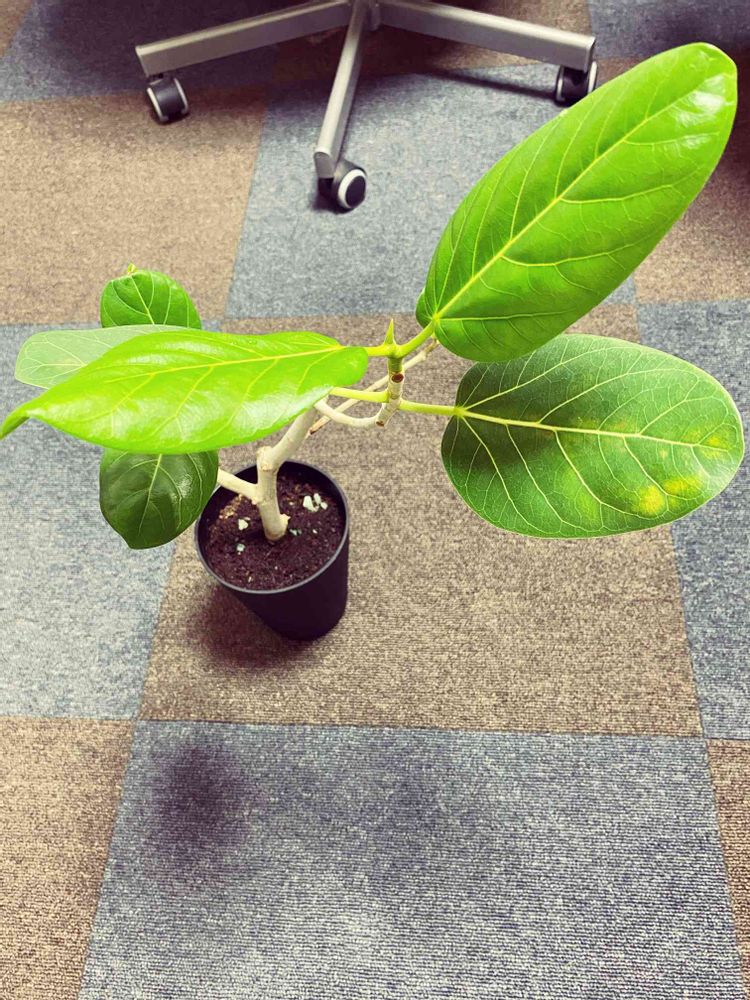 害虫+根腐れ で、700円で売られていたフィカス.ベンガレンシス。植え替え作業、害虫駆除で様子見およそ一か月🌞 葉が2枚しかなかったですが、グングン成長し復活🤠👍