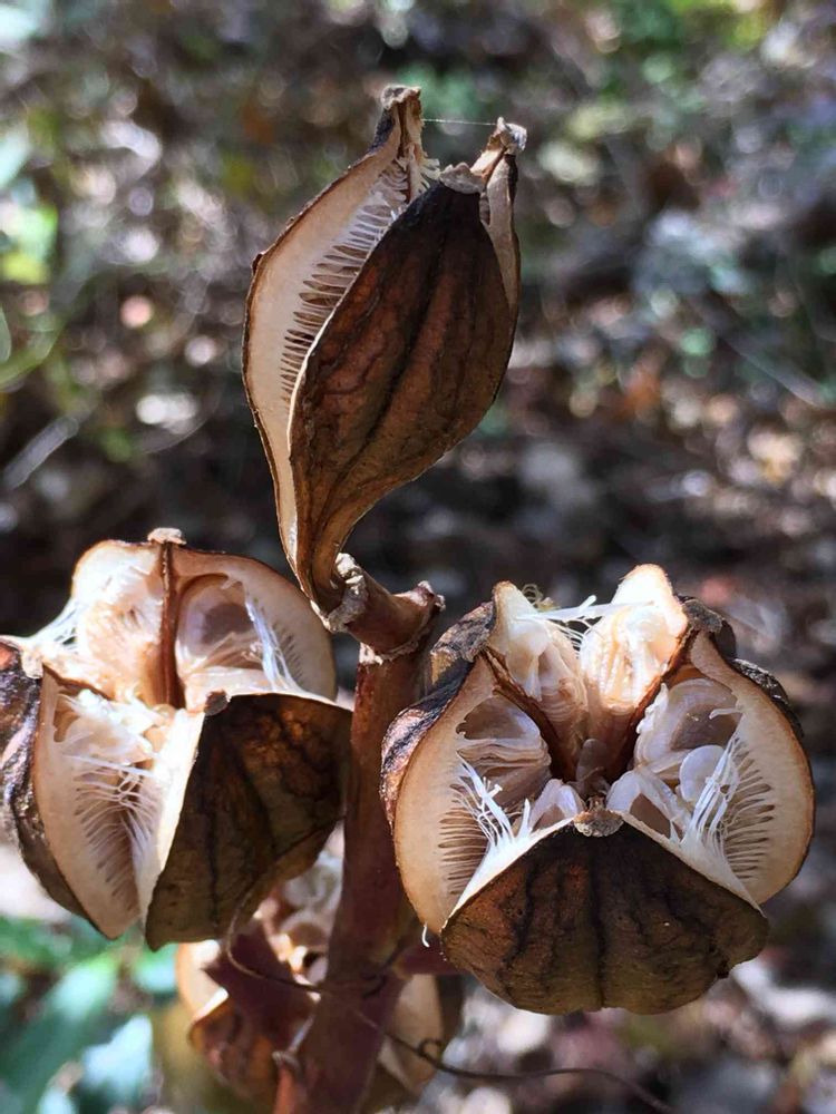 久しぶりにウバユリの完熟実見ました!!中が割れると、薄い種が、パラ~~~っと出てきますよね。