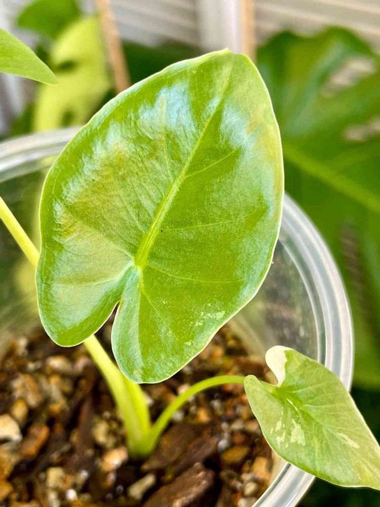 白が少なめの斑入りクワズイモさん。