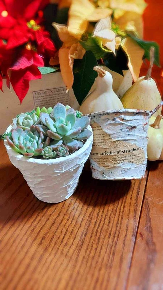 メンバーさんに教わりながら作ったリメイク鉢(((o(*゚∀゚*)o)))白鉢最高🎵