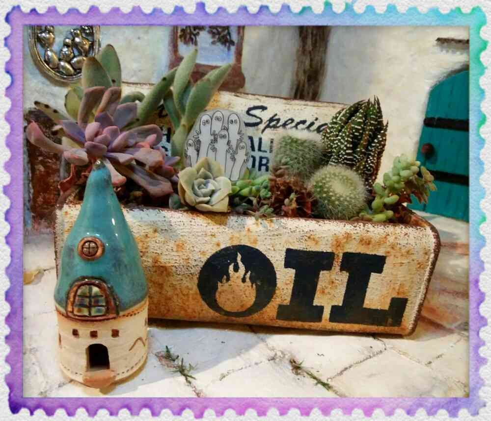 オイル缶なのでかっこいい子を寄せ植えして、ずっといい感じに成長中です💞