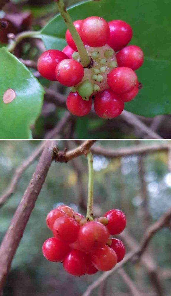 サネカズラの赤い実は鹿の子万頭のようで和菓子が食べたくなりますよネ~😄😁😋