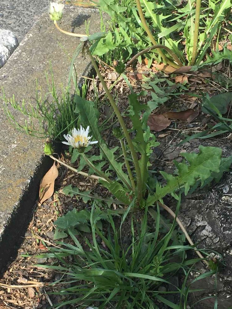 去年の4月に東京都町田市を訪ねた時、路肩にシロバナタンポポが咲いていました。