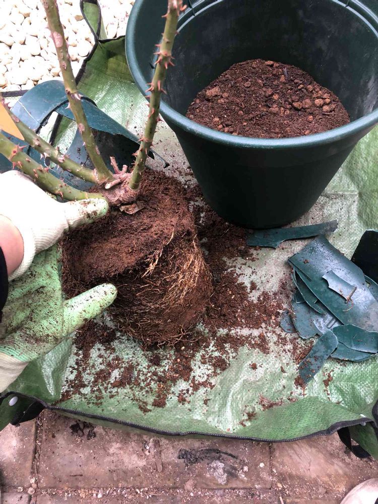 鉢から取り出すために奮闘していたら、鉢を割ってしまい焦りましたが、苗そのものは白い根っこも回っていて良い感じでした😌