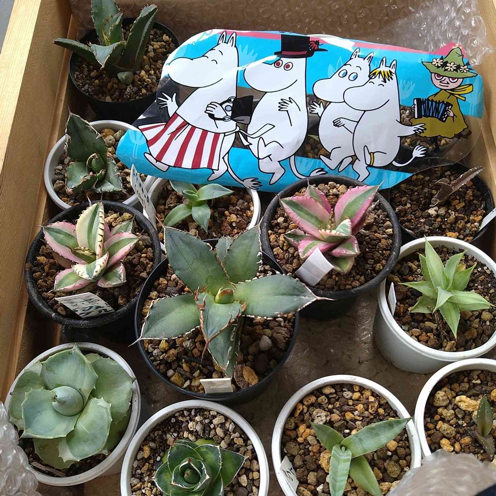 昨日はムーミンの日だったんですねー、可愛いですね😍カラフルなアガベも魅力的😊特にピンク系には心惹かれますねー💖😍💙😍