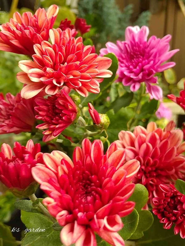 元々サーモンピンクの濃淡がある綺麗な菊だけど今年は濃い赤に近い色目になりました😅