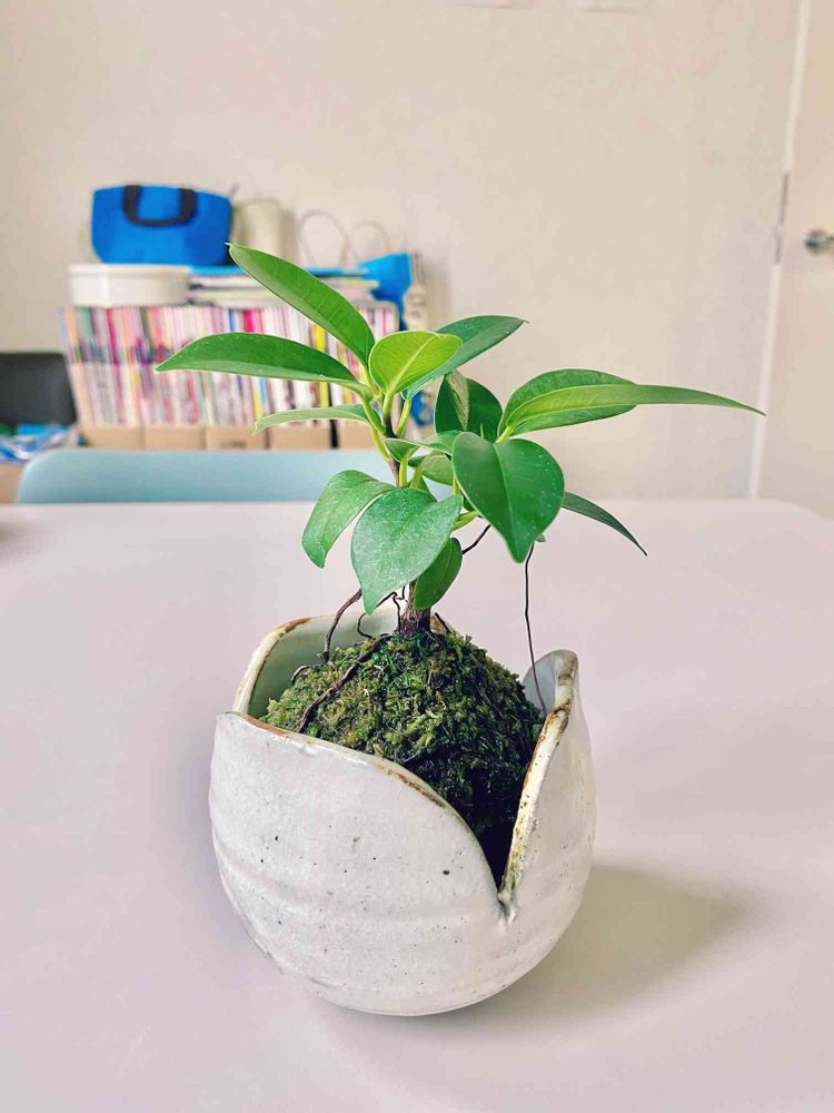 ガジュマル苔玉も、素敵だし、苔玉を入れている鉢?お皿?も素敵😍