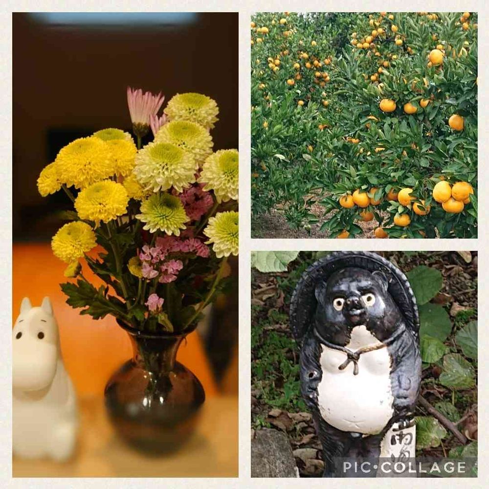 昨日 たぬき祭りに参加しようとして 散歩中に発見したタヌキさんと 静岡らしくミカン🍊畑も 一緒です(笑)🤣🤣🤣