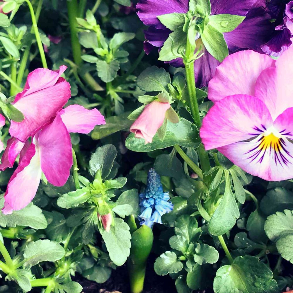 ビオラはもっさもさだから、ムスカリ埋もれてる😑
