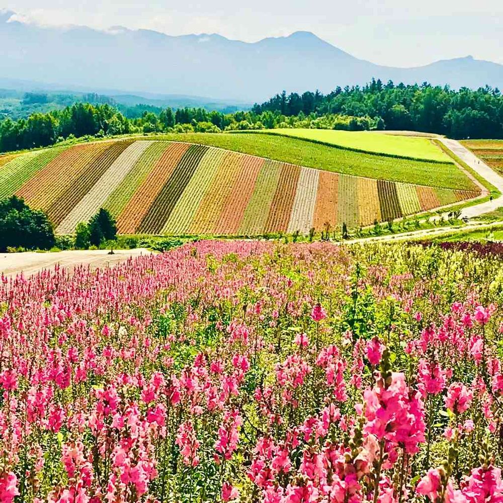 金魚草も秋色ストライプのお花畑も向こうの山も素敵ですね~💕