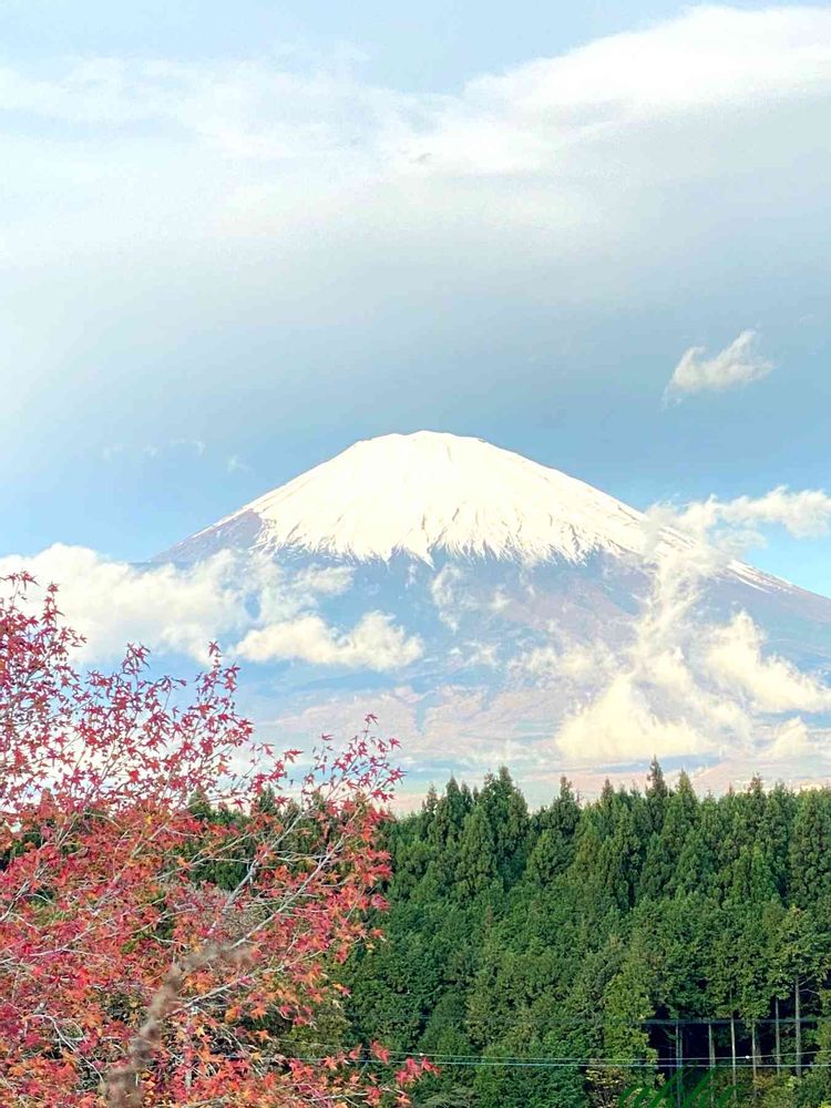 富士山🗻と紅葉🍁と緑の杉の木、そして雲のかげんがとてもうまくマッチングしていて素敵ですね〜❣️いつもありがとうございます😊